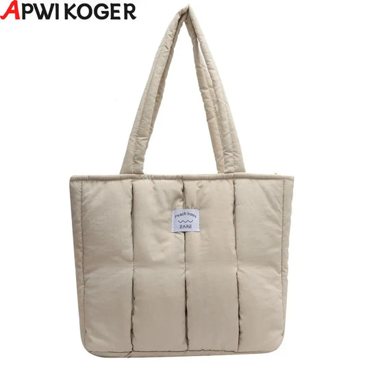 Casual Top-Handle Bag Large Capacity Women Shopping Bag Cotton Padded Solid Color Soft Portable Designer for Office Travel